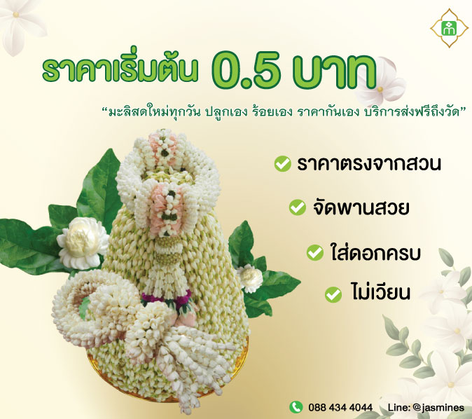 ทางร้านมี มะลิแก้บน หลวงพ่อทันใจ เริ่มต้นราคาพวงละ 0.5 บาทเท่านั้น,และมีบริการ ดอกมะลิ ราคาถูก เชียงใหม่ ท่านสามารถโทรสั่งได้และขึ้นไปส่งบนพระธาตุได้